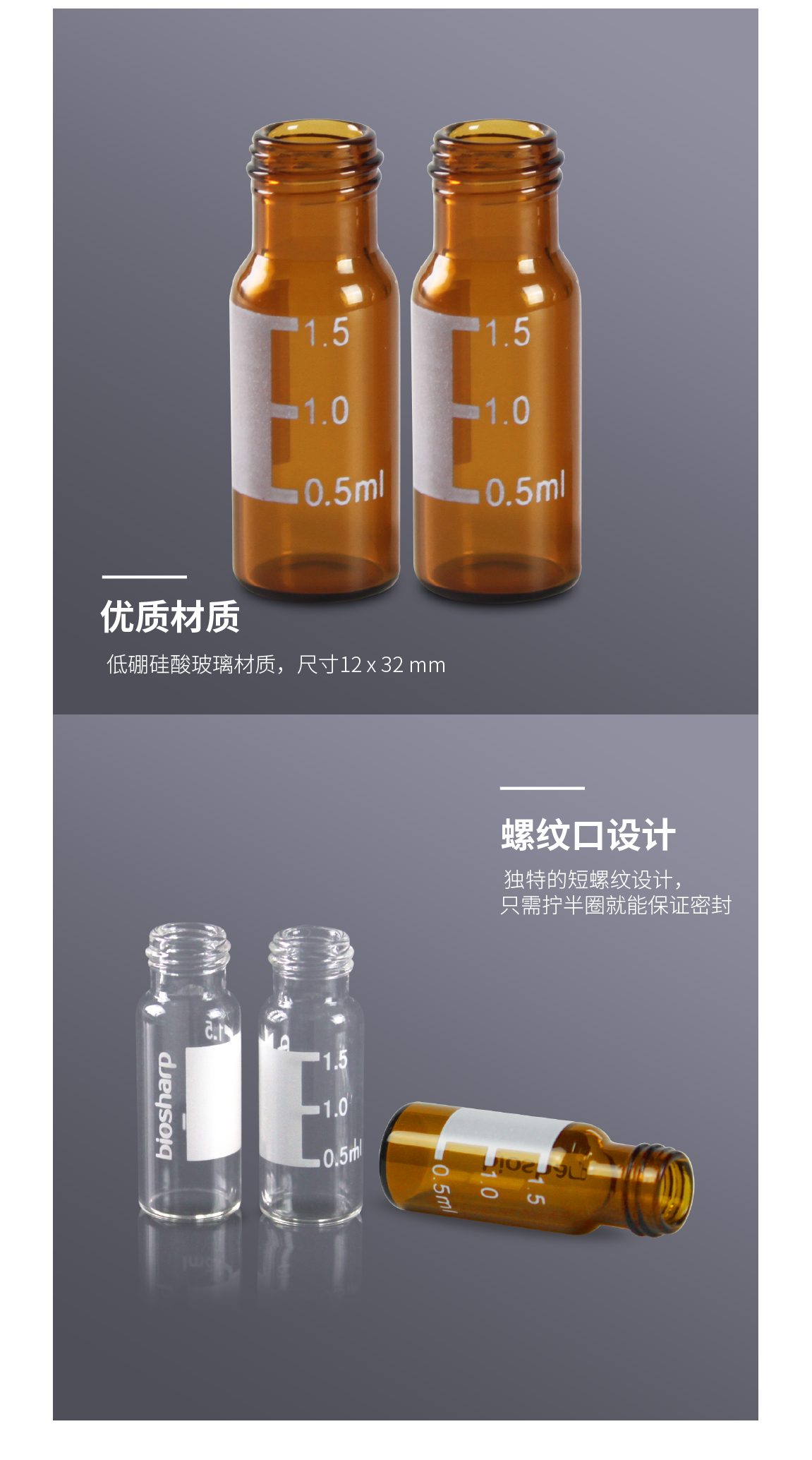 BS-JYP-015A 1.5ml棕色高回收瓶,无刻度